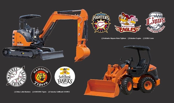 日立建機日本は、プロ野球6球団それぞれが公式に承認した球団カラーとロゴデザインを施したミニショベルとミニホイールローダを、3月20日より発売する。