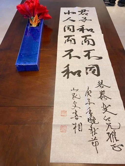 문 전 의장이 보내 준 글은 논어에 나오는 것으로 '군자는 조화를 이루되 무턱대고 좇지는 않지만, 소인은 부화뇌동할 뿐 조화를 이루지는 못한다'는 뜻이다.