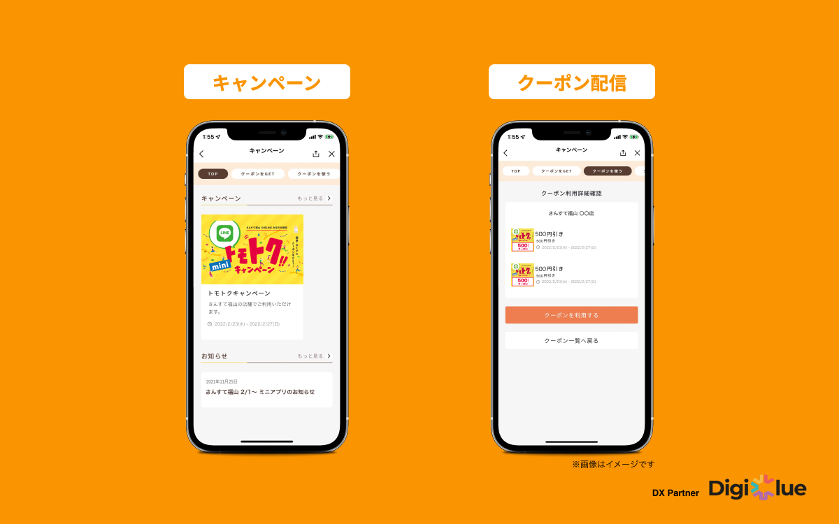 - クーポン発行機能(IDベースでの使用状況が取得可能)