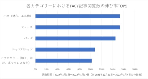 FACY MENの記事閲覧数を分析すると、「小物(財布、革小物)」に関する記事の閲覧数が前回と比べて伸びていた。