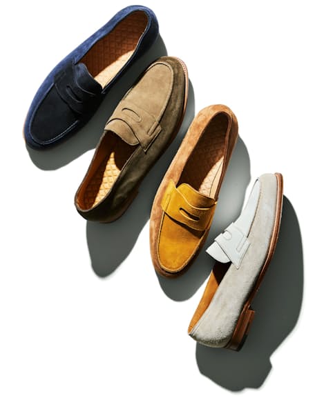 1950年代の登場以来、ジョンロブのアイコンとして愛され続ける、ロペス。そんな名作ローファーが、今季、シーズナルカラーのスエードのコンビ仕様になって登場した。しなやかなテンシルシングルソールを採用しており、このソール専用の格子状の型押しを施したインソールも印象的だ。全4色展開。各23万1000円(ジョン ロブ ジャパン)